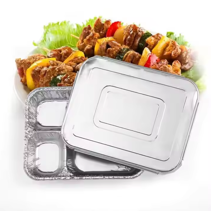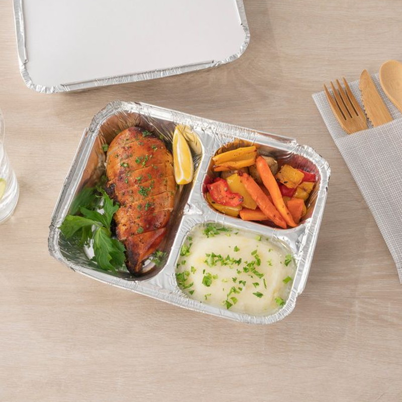Aluminum foil container is a lightweight and environmentally friendly food packaging container made of aluminum foil material, which has good heat resistance, moisture resistance, and sealing properties. It is widely used in food delivery, airline meals, baked goods and other fields, and can effectively maintain the temperature and freshness of food. Aluminum foil meal boxes are recyclable and in line with sustainable environmental concepts, making them an ideal choice for the modern catering industry.